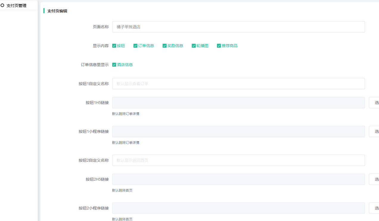 (3) 门店酒店的支付页面显示优先级为:独立后台设置>平台设置的门店类型>默认类型;门店独立后台设置的支付页和平台设置的门店类型的支付页可同时开启
