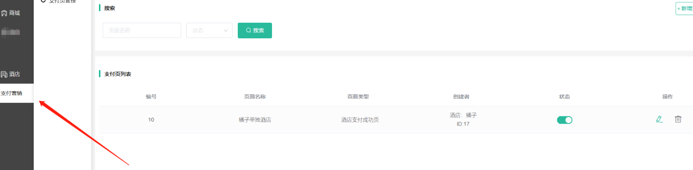 2,支付页管理:显示所有支付成功页面,包括门店独立后台和酒店独立后台添加的支付页面